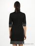 Очаровательное платье из приятного на ощупь трикотажа стильного черного цвета. Широкий воротник стойка. Короткие рукава. Застежка на незаметную молнию на спинке. Изделие декорировано оригинальными контрастными вставками. Комфортная и уютная модель прекрасно подойдет активным женщинам.