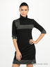 Очаровательное платье из приятного на ощупь трикотажа стильного черного цвета. Широкий воротник стойка. Короткие рукава. Застежка на незаметную молнию на спинке. Изделие декорировано оригинальными контрастными вставками. Комфортная и уютная модель прекрасно подойдет активным женщинам.