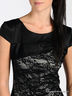 Элегантное двухслойное платье приталенного кроя: внутри шелковистая ткань, снаружи гипюр. Круглый вырез платья. На груди ткань аккуратно присборенна. Сзади застегивается на молнию.