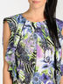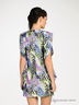 Платье из легкой ткани свободного кроя. Круглый вырез горловины. Вдоль проймы рукавов проходят воланы. Сзади застегивается на незаметную молнию.