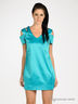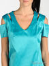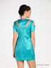 Платье из нежной атласной ткани, полуприлегающего кроя. V-образный вырез горловины. Необычный крой рукавов придает платью пикантности. 2 втачных кармана на линии бедер. Застегивается на незаметную молнию.