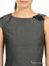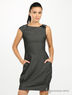 Элегантное женское платье приталенного покроя с округлым вырезом горловины. Спереди два удобных втачных кармана. Незаметная застежка - молния, на спинке. Изделие украшено контрастной прострочкой рукавов и декоративными лентами на плече.