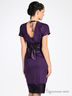 Приталенное платье из шелковистой ткани с атласными вставками. Короткие рукава. Глубокий вырез завязывается на тонкие шнурки, кокетка. Сзади атласная лента, которую можно завязать изящным бантом. Застегивается сбоку на незаметную молнию.