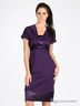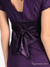 Приталенное платье из шелковистой ткани с атласными вставками. Короткие рукава. Глубокий вырез завязывается на тонкие шнурки, кокетка. Сзади атласная лента, которую можно завязать изящным бантом. Застегивается сбоку на незаметную молнию.