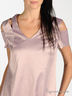 Платье из нежной атласной ткани, полуприлегающего кроя. V-образный вырез горловины. Необычный крой рукавов придает платью пикантности. 2 втачных кармана на линии бедер. Застегивается на незаметную молнию.