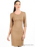 Платье из плотного трикотажа с корсетной линией по талии. Украшено металлическими молниями. Модель приталенного кроя подчеркивает достоинства фигуры. Рукава 3/4 и округлым вырез горловины. Отличный вариант для создания модного, повседневного образа.