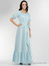 Стильное платье эффектной расцветки длиной в пол. Модель превосходно подчеркнет стройность Вашей фигуры. Изящный вырез в области декольте и рукава 3/4. Женственный вариант для Вашего гардероба.