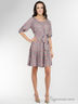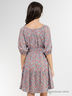 Платье короткое с округлым вырезом горловины и рукавами 3/4. Модель с поясом, декольте на резинке. Декорировано изделие яркой расцветкой. Великолепный вариант на все случаи жизни!
