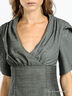 Шерстяное платье футляр с элегантным запахом на декольте и рукавах. Выполнено из однотонного материала привлекательной расцветки. Модель с короткими рукавами и глубоким вырезом декольте. Отличный вариант на каждый день.