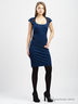 Платье футляр из трикотажа декорированное вставками из кружева. Модель с короткими рукавами и округлым вырезом горловины. Отличный вариант на каждый день.