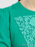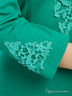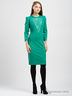 Платье креп с кружевом на груди. Модель с длинными рукавами и округлым вырезом горловины. Спереди изделие украшено декоративным элементом. Отличный вариант на каждый день.