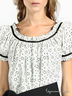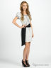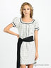 Детали: округлый вырез горловины и короткий рукав дополнен рюшей и шелковистой лентой, широкий пояс