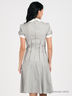 Детали: отложной ворот-стойка, застежка на полочке на пуговицы, застежка на спинке на молнию, короткий рукав, планка-застежка украшена оборками, принты