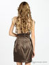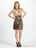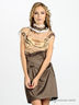 Отрезное платье на молнии. Прозрачная блуза с белым воротом. Коричневая юбка.