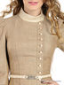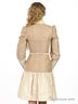 Детали: застежка на молнию на спине, полочка дополнена планкой с пуговицами, рукав с высокой манжетой на пуговицах, пояс на резинке с антикварной застежкой, низ изделия дополнен широким шелковистым воланом