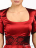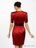 Платье из эластичной ткани с рукавом и юбкой-тюльпан на поясе. Вставка из кружева шантильи.