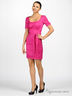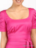 Детали: застежка на скрытую молнию, короткий рукав декорирован простроченными складками, втачной пояс, два кармана, декорированные простроченными складками