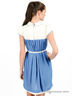 Детали: застежка на молнию на спине и на полочке на пуговицы, короткий рукав-фонарик, завышенная отрезная талия декорирована плиссе, эластичный пояс с оригинальной металлической пряжкой.