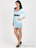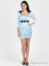 Детали: округлый вырез горловины, длинный рукав, застежка на крючки на спинке, отрезной пояс с застежкой на крючки на спинке, декорировано нашивками