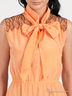 Детали: ворот переходит в завязывающиеся ленты, отрезной лиф подчеркнут вставленной резинкой, плечики декорированы кружевом