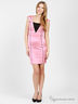 Нарядное платье приталенного силуэта из плотного эластичного атласа. Оригинальный вырез горловины, застежка на молнию сзади, шлица. Декорировано контрастной тесьмой и вставками ажурной ткани с люрексом. Отлично подходит для вечеринок и праздников.