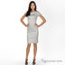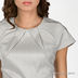 Гладкое платье стрейч приталенного кроя. Круглый вырез с фигурными складками, короткие рукава, сзади застегивается на молнию.
