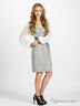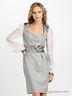 Платье светло-серое на молнии с блестящим поясом и плечами, с белыми хлопковыми рукавами.