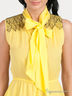 Детали: ворот переходит в завязывающиеся ленты, отрезной лиф подчеркнут вставленной резинкой, плечики декорированы кружевом