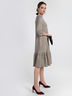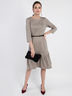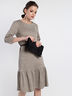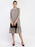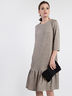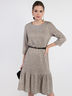 Трикотажное платье Асилуэта с воланом, ткань с меланжевым рисунком и нитью люрекс. Рукава длинные 3/4, вырез горловины округлый обработан обтачкой.