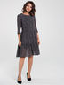 Стильное платье из шифона свободного кроя на подкладе. Горловина округлой формы, укороченные рукава 3/4 демонстрируют изящные линии запястий. Волан по низу юбки добавляет образу женственности и романтичности. Тонкий поясок позволит подчеркнуть линию талии.