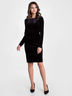 Нарядное платье прилегающего силуэта выполнено из бархата черного цвета. Округлый вырез горловины обработан внутренней обтачкой. На спинке горловина переходит в V-образный вырез. Рукава длинные, втачные.