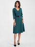 Элегантное платье приталенного силуэта с расклешенной юбкой выполнено из костюмной ткани. V-образный вырез горловины обработан внутренней обтачкой. Потайная застежка- молния расположена в среднем шве спинки. Рукава втачные длиною 3/4. Ремень в комплект не входит.
