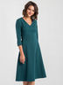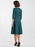 Элегантное платье приталенного силуэта с расклешенной юбкой выполнено из костюмной ткани. V-образный вырез горловины обработан внутренней обтачкой. Потайная застежка- молния расположена в среднем шве спинки. Рукава втачные длиною 3/4. Ремень в комплект не входит.