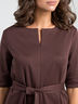 Элегантное платье прямого силуэта из трикотажного полотна, с фигурным вырезом и небольшим разрезом по низу платья. Пояс на талии подчеркнет фигуру.