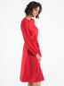 Очаровательное платье миди из легкой плательной ткани. По линии талии платье собрано на резинку. Длинные втачные рукава по низу присборены и обработаны манжетами. Округлый вырез горловины обработан внутренней обтачкой. Застежка сзади на петлю и пуговицу. Пояс входит в комплект.