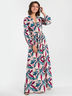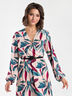 Элегантное платье выполнено из легкой плательной ткани. V-образный вырез горловины, переходящий в запах эффектно подчеркивает линию декольте. Длинные втачные рукава по низу присборены и обработаны манжетами. По линии талии платье собрано на резинку. Пояс входит в комплект.