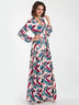 Элегантное платье выполнено из легкой плательной ткани. V-образный вырез горловины, переходящий в запах эффектно подчеркивает линию декольте. Длинные втачные рукава по низу присборены и обработаны манжетами. По линии талии платье собрано на резинку. Пояс входит в комплект.