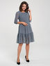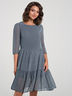 Стильное платье из шифона свободного кроя на подкладе. Горловина округлой формы, укороченные рукава 3/4 демонстрируют изящные линии запястий. Волан по низу юбки добавляет образу женственности и романтичности. Тонкий поясок позволит подчеркнуть линию талии.