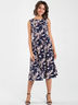 Платье приталенного силуэта выполнено из легкой плательной ткани с принтом. Вырез горловины и проймы обработаны кантом. Клешеная юбка присборена по линии талии. Потайная молния в среднем шве спинки. V- образный вырез на спинке придаст изюминку Вашему образу. Ремешок в комплект не входит.