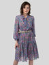 Легкое шифоновое платье Асилуэта с завшенной талией, на подкладе. Горловина с Vобразным вырезом оформлена стойкой переходящей в завязки. Рукава 3/4 на резинке с рюшей. Волан по низу юбки добавляет образу женственности и романтичности. ВНИМАНИЕ: Ремень в комплект не входит