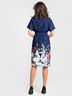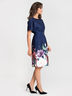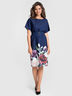 Платье полуприлегающего кроя выполнено из костюмной ткани с ярким цветочным бордюром. Вырез горловины "лодочка" обработан внутренней обтачкой. Рукав цельнокроеный со спущенной проймой. Пояс входит в комплект.