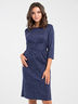Платье полуприлегающего силуэта из мягкого трикотажа меланж, перекресный пояс вшит в боковые швы. Горловина округлая, рукав 3/4.