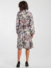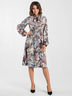 Очаровательное платье миди выполнено из легкой плательной ткани. По линии талии платье собрано на резинку. Длинные втачные рукава по низу присборены и обработаны манжетами. V-образный вырез горловины обработан внутренней обтачкой и дополнен бантом.