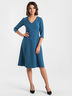 Элегантное платье приталенного силуэта с расклешенной юбкой выполнено из костюмной ткани. V-образный вырез горловины обработан внутренней обтачкой. Потайная застежка- молния расположена в среднем шве спинки. Рукава втачные длиною 3/4. Ремень в комплект не входит.