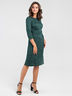 Платье полуприлегающего силуэта из мягкого трикотажа меланж, перекресный пояс вшит в боковые швы. Горловина округлая, рукав 3/4.