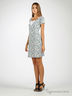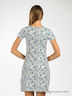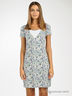 Короткое целькроеное платье с цветочным принтом. Круглая горловина. Короткие рукава реглан. Треугольная кокетка спереди белого цвета.