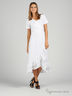 Длинное платье с запахом. V-образный вырез. Короткие рукава. Низ изделия украшен ажурными оборками.