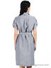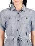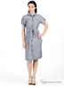 Детали: втачной отложной ворот с острыми углами на небольшой стойке с застежкой на пуговице, короткий рукав-сафари, четыре накладных кармана на пуговицах, застежка на пуговицах, шлевки под ремень, ремень из основного материала в комплекте позволяет придать приталенный силуэт.