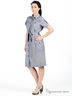 Детали: втачной отложной ворот с острыми углами на небольшой стойке с застежкой на пуговице, короткий рукав-сафари, четыре накладных кармана на пуговицах, застежка на пуговицах, шлевки под ремень, ремень из основного материала в комплекте позволяет придать приталенный силуэт.