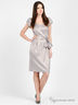 Стильное платье из плотной атласной ткани. V-образный вырез горловины. Застежка на спинке на молнию. Короткие рукава-фонарики. На полочке заложены две встречные складки. На спинке расположена шлица. Талия подчеркивается с помощью оригинального пояса с застежкой на крючок. Прекрасный вариант для создания праздничного образа!